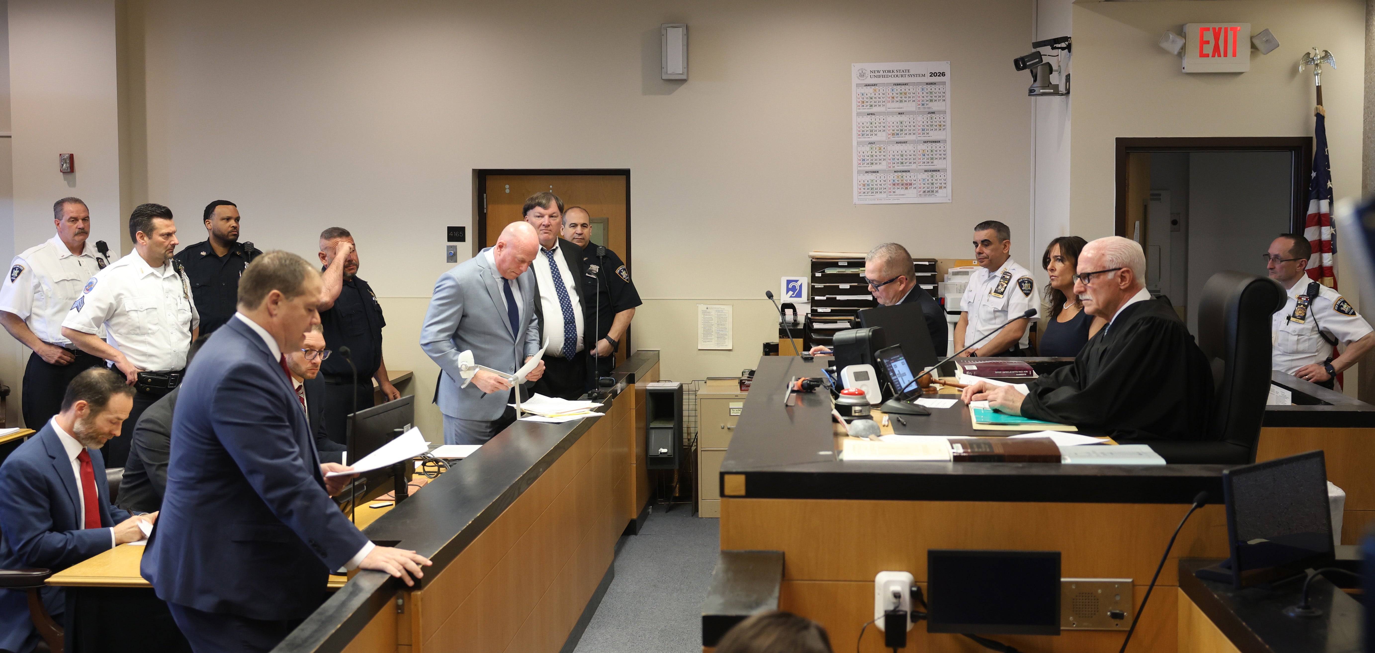 The courtroom is extremely crowded, and two overflow rooms have been opened