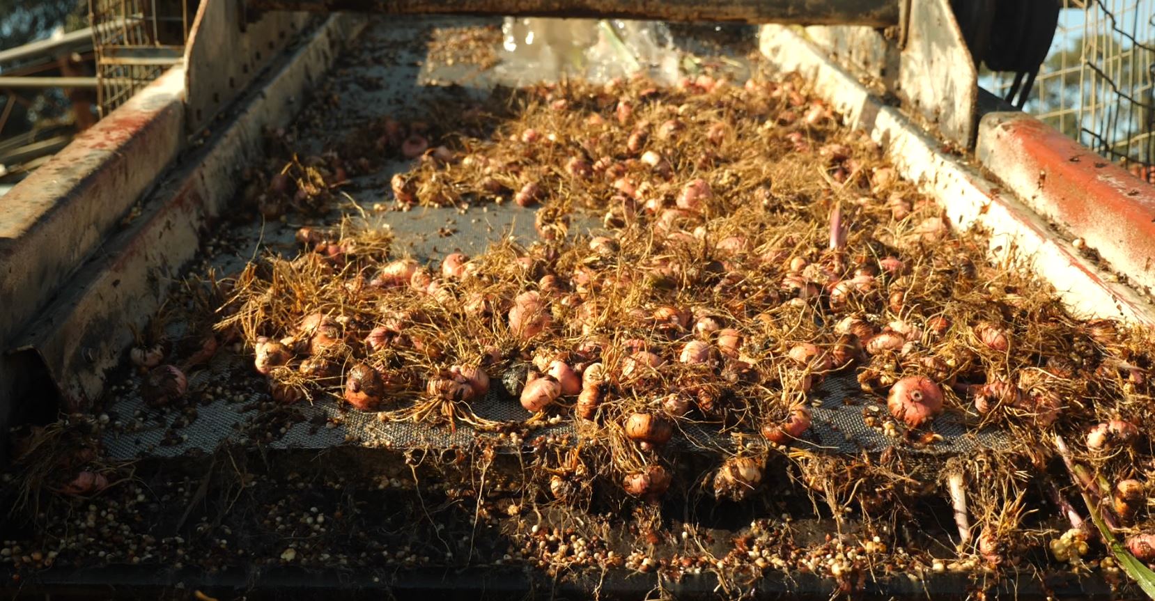 "When I first harvested corms years ago I used to get four old ladies to come out from Wolseley and it was all backbreaking work," he said.