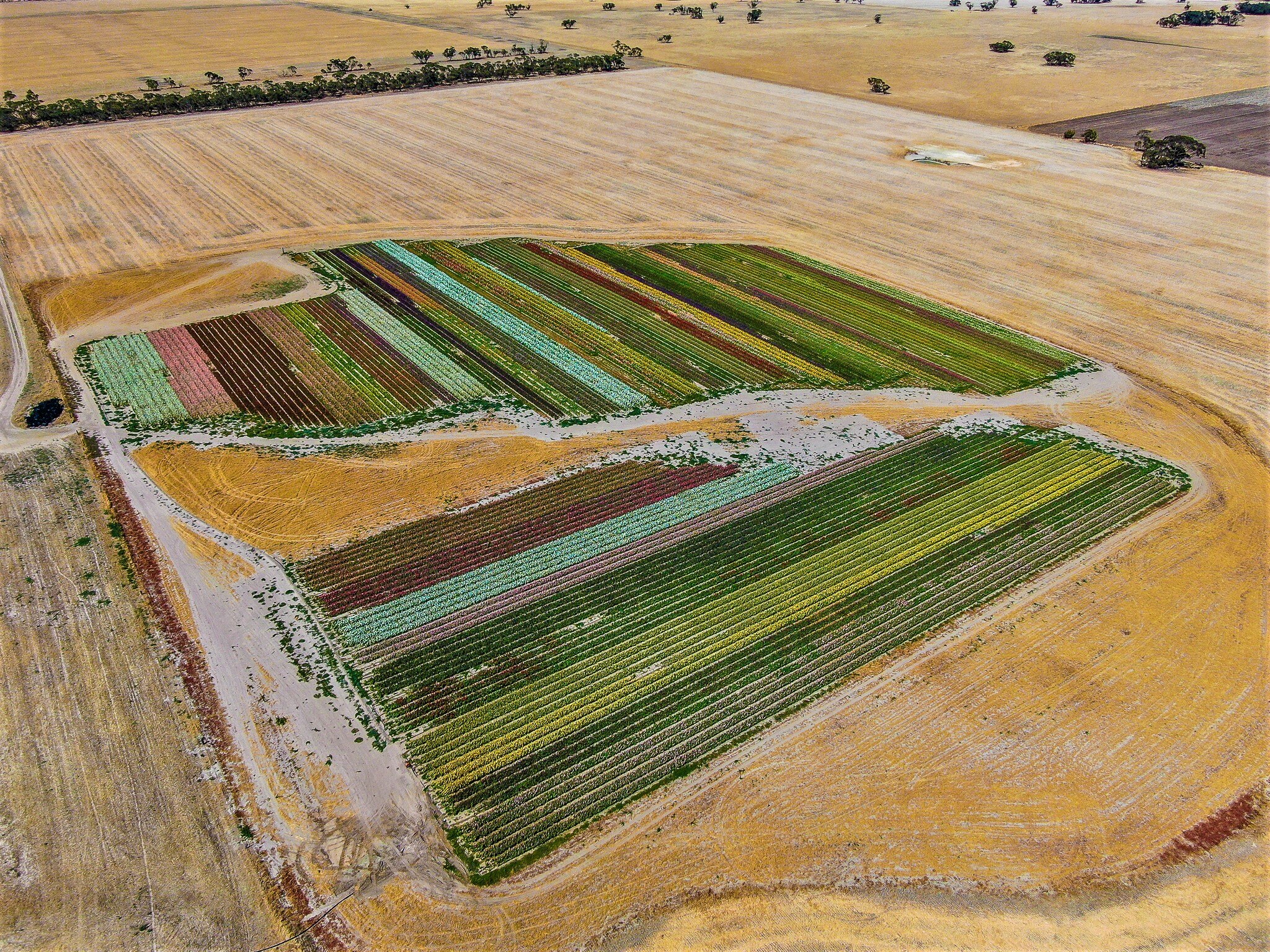 These rows of striking blooms near Bordertown are no accident.