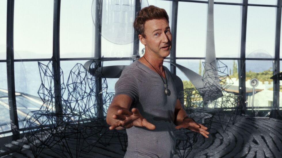 “Glass Onion” is set in the early days of the COVID pandemic and, save for an extended setup and some flashback sequences, primarily on a private island in Greece owned by Edward Norton’s Miles Bron — and you probably won’t read many reviews that don’t refer to Miles as an Elon Musk-like tech billionaire, and that’s because Miles is an Elon Musk-like tech billionaire. Miles is either a generational genius or a pompous fool who has lucked into huge fortune and global influence (maybe he’s a little bit of both), and every year he stages a lavish reunion for his once tight circle of friends from back in the day, when they were all nobodies who hung out at a bar called the Glass Onion and dreamed of becoming somebodies. With cinematographer Steve Yedlin and the production design team delivering some spectacular visuals from the Greek island of Spetses, Miles welcomes his guests, including: