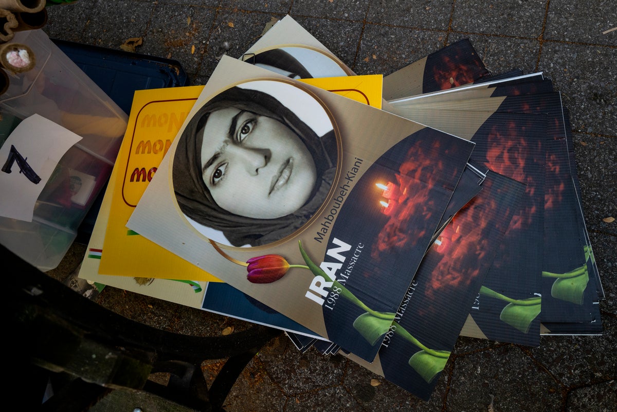 —A truck moving through traffic carrying a large sign calling for Iran's president to be prosecuted.
