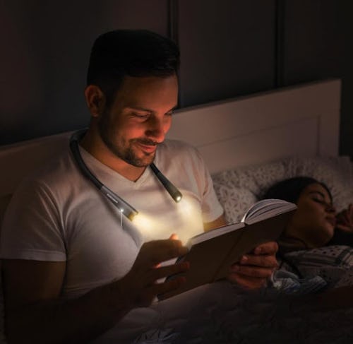 Finish that last chapter without waking up your partner with this clever hands-free book light. This light has six levels of brightness that you can adjust to fit your liking. You can easily charge it with a USB-C, with each charge lasting up to 80 hours. It also has three lighting modes: warm white, cool white, and yellow.
