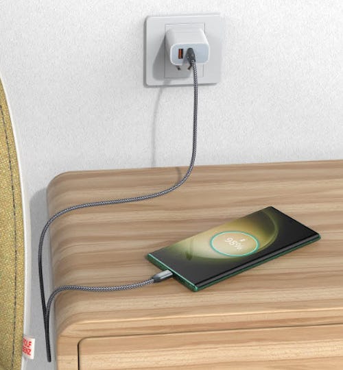 Created from military-grade nylon fiber, these type-C USB cables can bend and flex without any issues. Arriving in a pack of two, each cord measures in at 3.3 feet. They have high temperature protection as well as short-circuit protection, and charge your devices fast. While you need to buy a power block separately, these cords are great to have on hand, especially if you've got multiple devices. You can even choose between four colors.