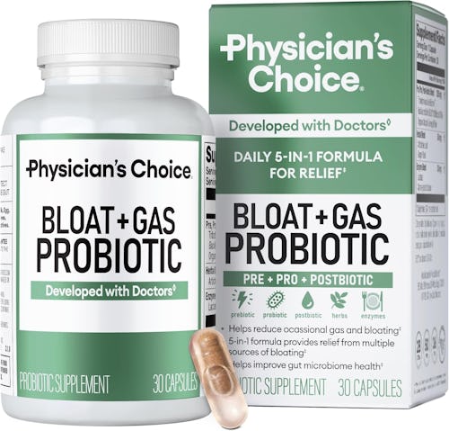 This daily probiotic features a five-in-one formula designed to reduce bloating and strengthen your gut lining. With probiotics, prebiotics, postbiotics, enzymes, and herbs, this probiotic aims to reduce gas production and bloating — and the reviews are rave.