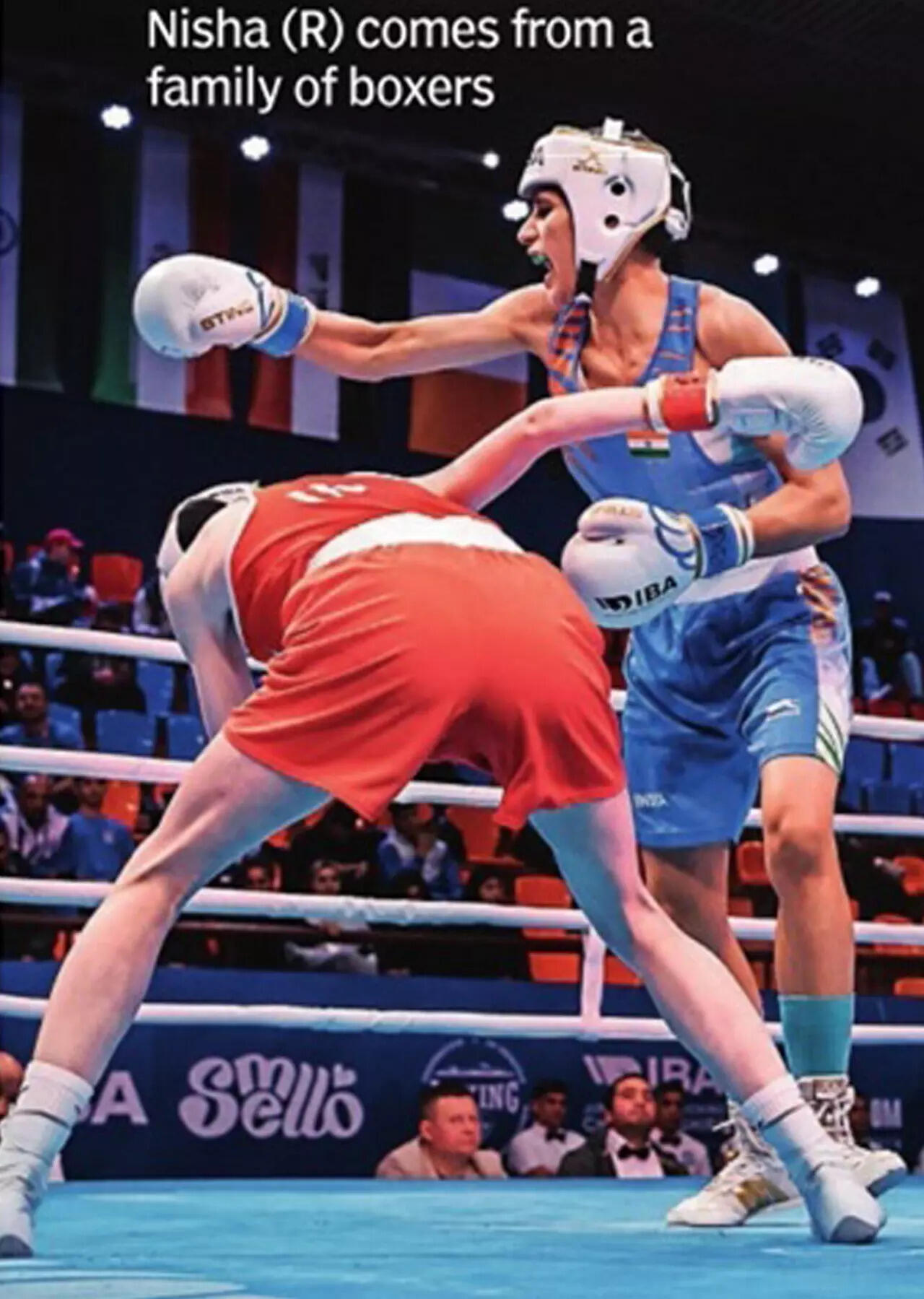 For Nisha, boxing was a natural career choice. She comes from a family of boxers, with her aunt Kavita Chahal an Arjuna and Bhim awardee, four-time Asian and three-time World Police Games medallist. Her elder sister Lalita has already represented India internationally on several occasions.
