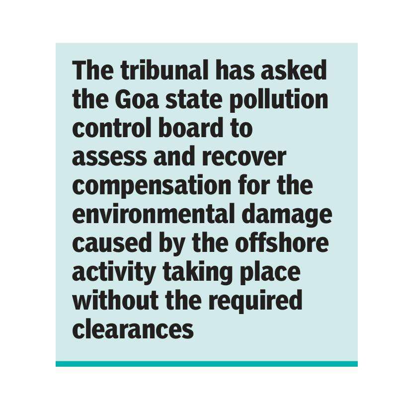 The Goa State Pollution Control Board (GSPCB) has been asked to assess and recover compensation for the environmental damage caused by the offshore activity taking place without the required clearances.