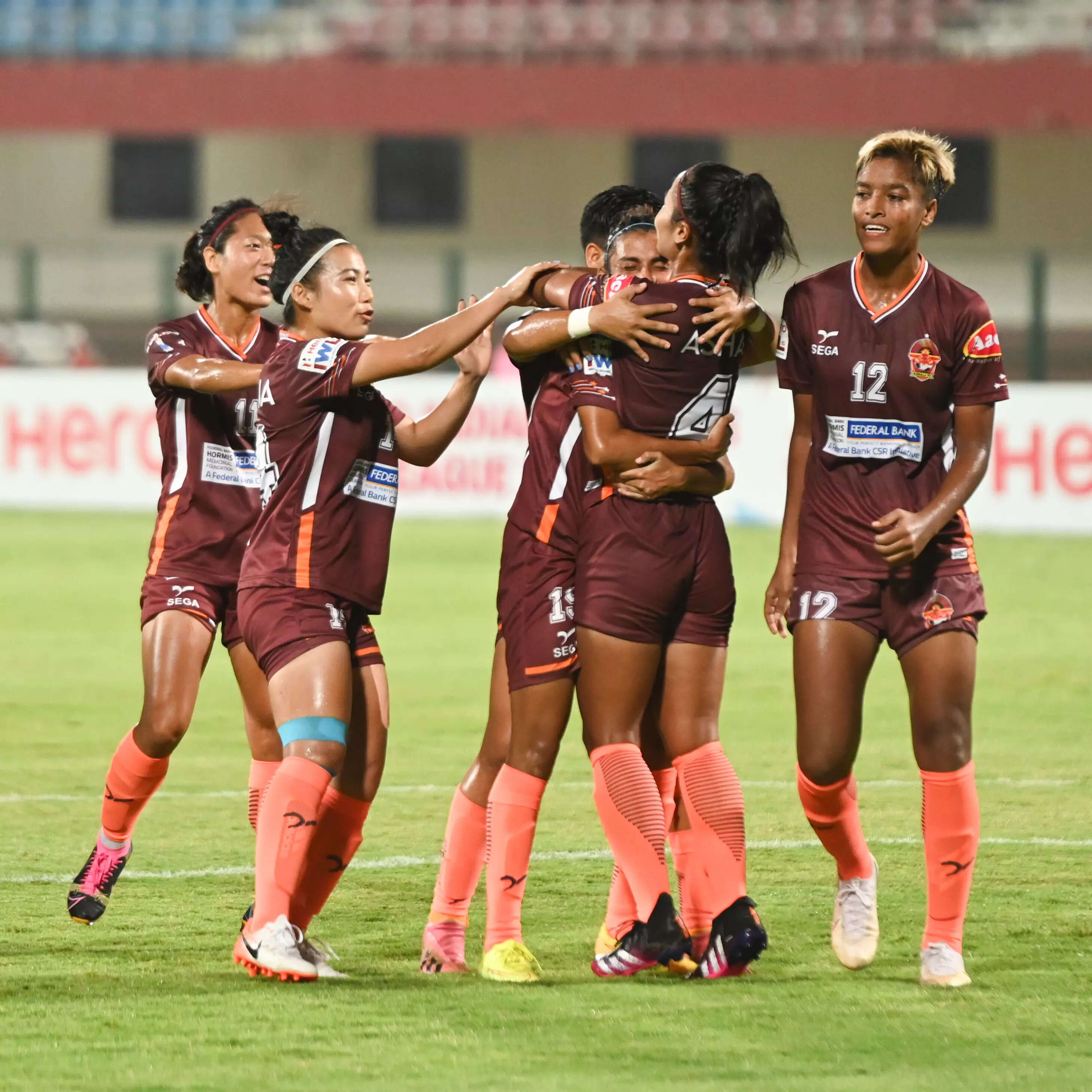 The Malabarians made it 3-0 five minutes before the break as Soumya Guguloth's cross from the left found its way to Manisha at the far post and the India international obliged with an easy tap-in for her 14th of the season.