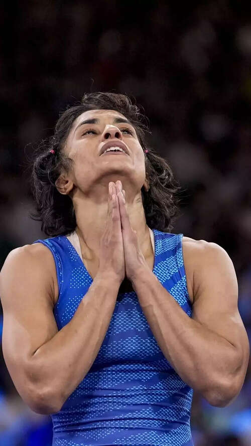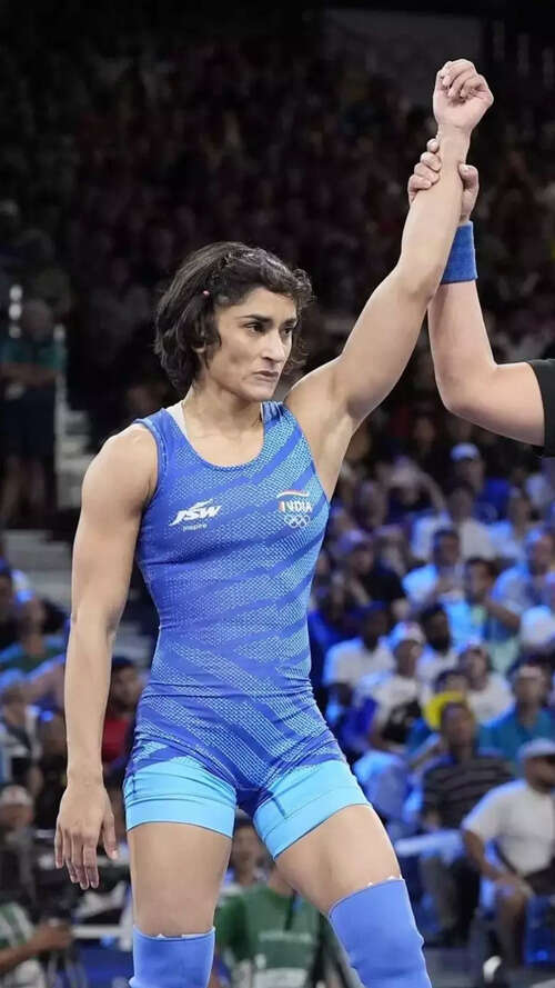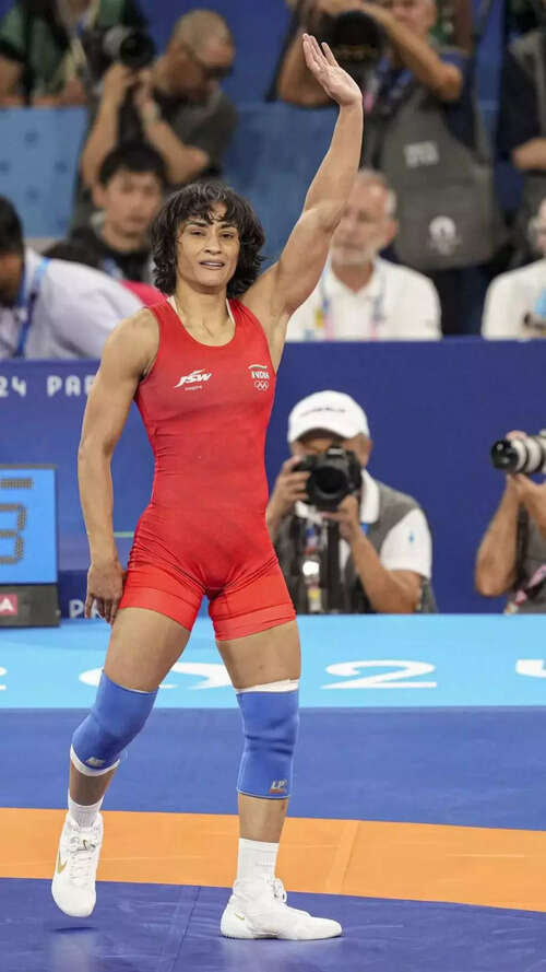NEW DELHI: India's star wrestler Vinesh Phogat made history by advancing to the final of the women's freestyle 50kg wrestling at the Paris 2024 Olympics. On Tuesday at Champ-de-Mars Arena Mat B, she defeated Cuba's Yusneylys Guzman with a 5-0 score in the semi-finals. This achievement marks her as the first Indian wrestler to reach the final in women's wrestling at the Olympics, ensuring her at least a silver medal in Paris. This is a significant improvement from her quarter-final exits at the Rio 2016 and Tokyo 2020 Games.