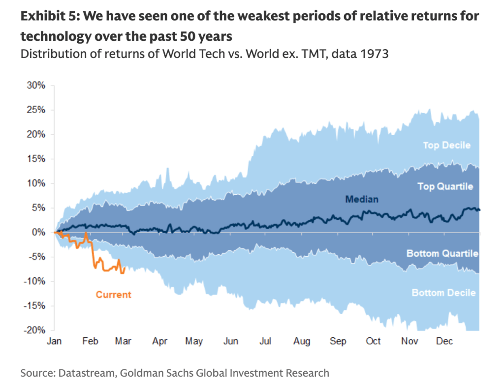 How these predictions bear out could weigh on the seriousness of any near-term correction, as some market signals resemble the Global Financial Crisis of 2007–08, yet private-sector balance sheets are healthy across households, corporations, and banks. For this reason, market watchers have been prone to compare the situation in markets to the bursting of the dotcom bubble in the early 2000s. Earnings have continued to tell a bullish story, with Goldman’s own research acknowledging global earnings estimates have actually risen since the start of 2026—an unusual and historically positive signal.