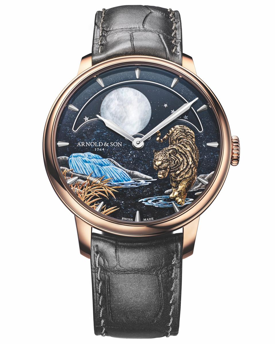 At the high end of the spectrum, prices max out at $70,000 for a Urwerk 105-M Iron Knight, a techno-futuristic timepiece with a 53 x 39.5 mm dial and stainless steel bezel with titanium case. Animated by wandering hours, retrograde minute, luminous hands and markers, the Iron Knight’s movement is the hand-wound manufacture caliber UR 5.01. “Although I sell a lot through my website,” Goldsmith confides, “my Instagram serves as a great gallery for my Asian, European and Middle Eastern clients.”