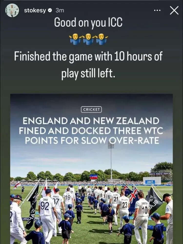 England captain Ben Stokes expressed his bewilderment regarding over-rate penalties following their victory against New Zealand. He reacted on social media with three shrugging emojis and the comment: "Good on you ICC."