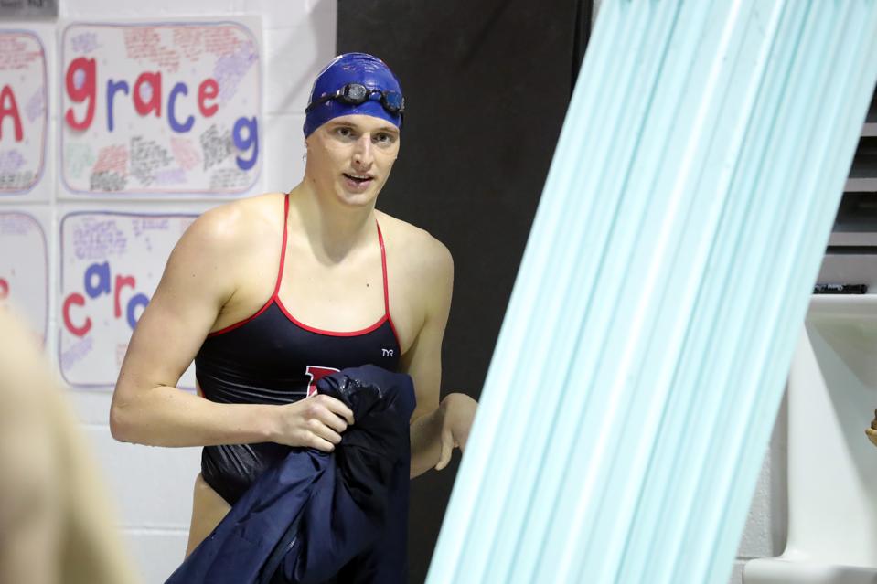 Lia Thomas of the Pennsylvania Quakers after competing in a freestyle event during a tri-meet against the Yale Bulldogs and the Dartmouth Big Green at Sheerr Pool on the campus of the University of Pennsylvania on January 8, 2022 in Philadelphia. Photo by Hunter Martin/Getty Images. Getty Images
