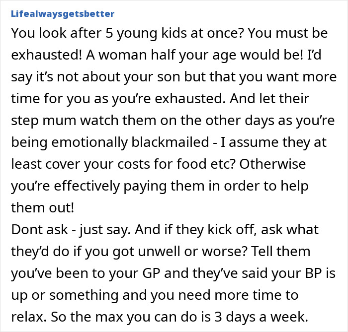 Hopefully, the author of the post and her family can find an arrangement that works for everyone, as childcare should never come at the expense of a person’s well-being.