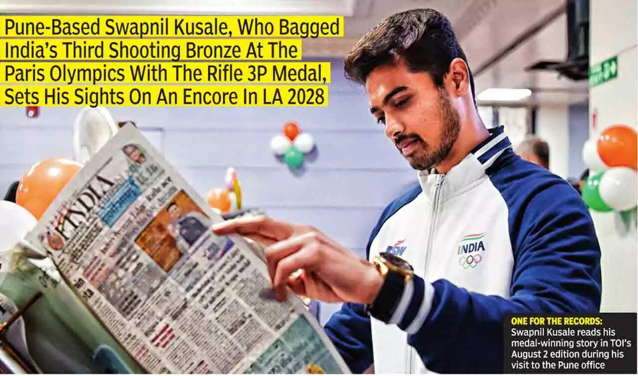 Pune-based Swapnil Kusale, who bagged India's third shooting bronze at the Paris Olympics with the rifle 3P medal, sets his sights on an encore in LA 2028