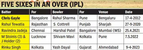 NEW DELHI: Kolkata Knight Riders' swashbuckling batter Rinku Singh smashed five consecutive sixes to pull off a thrilling three-wicket win over Gujarat Titans in the Indian Premier League at the Narendra Modi Stadium in Ahmedabad on Sunday. Needing 29 runs off the last over, Rinku whacked left-arm pacer Yash Dayal for five maximums on the trot to register a last-ball sensational victory.