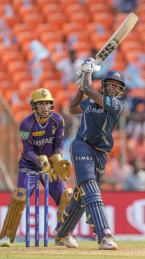 Sudharsan, who had scored an unbeaten 62 against Delhi Capitals in the previous match, struck 53 off 38 balls, studded with three boundaries and two maximums, while Shankar took just 24 balls to score an unbeaten 63, embellished with four boundaries and five sixes, as the Titans made hay.
