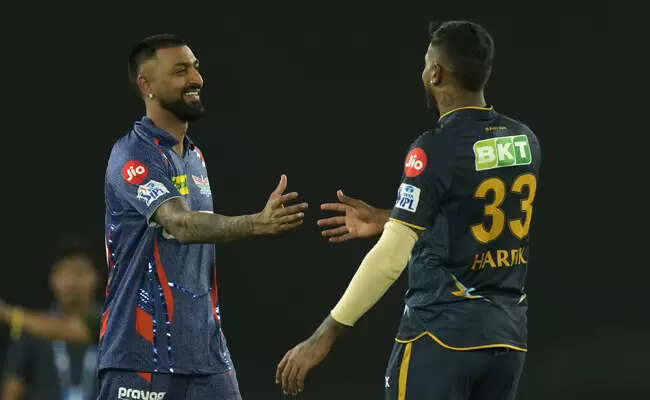 NEW DELHI: Defending champions Gujarat Titans produced an all-round performance to thump Lucknow Super Giants by 56 runs in their Indian Premier League match at the Narendra Modi stadium in Ahmedabad on Sunday. The Titans skipper Hardik Pandya came out triumphant in the 'battle of brothers' with his LSG counterpart Krunal Pandya.