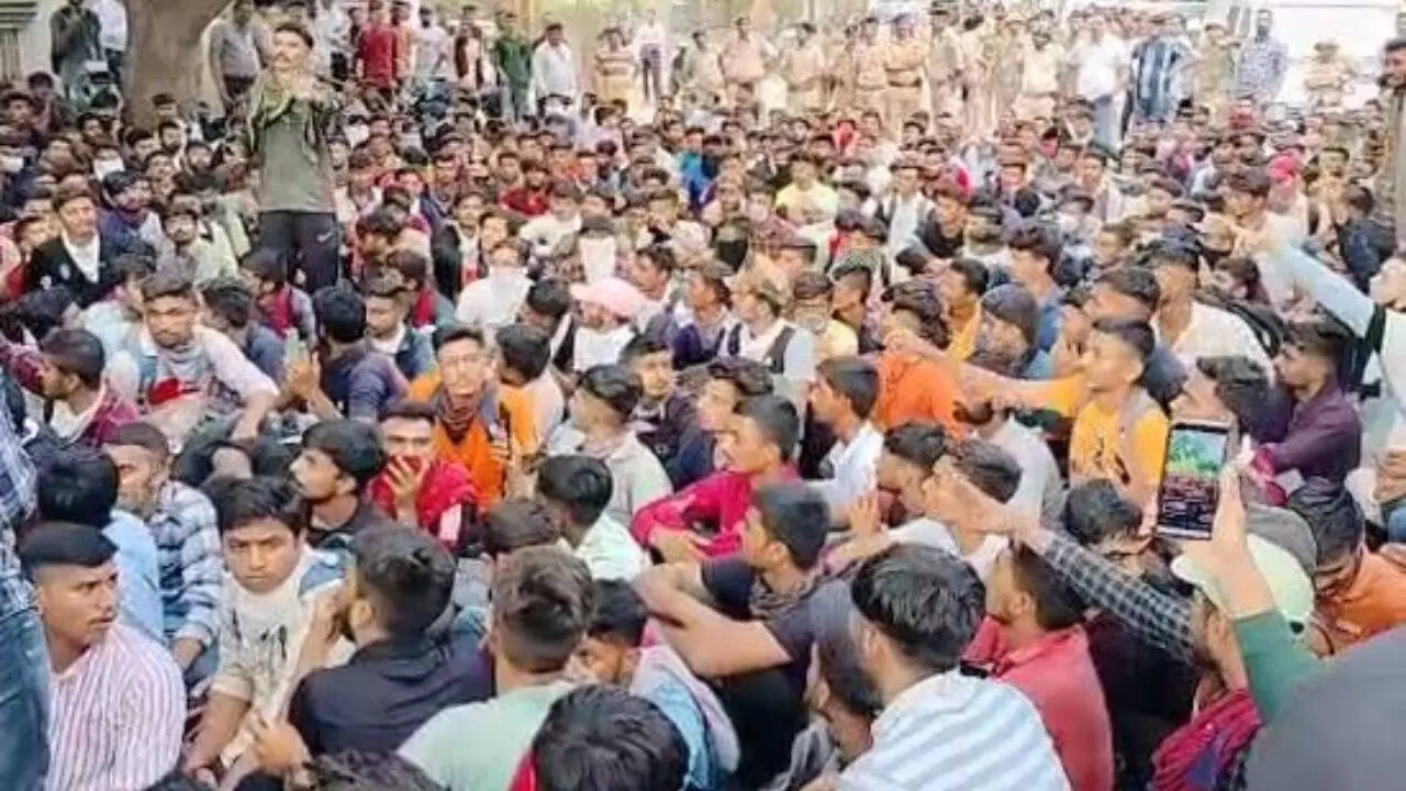 JAMNAGAR: Amid nationwide protests against the Centre's Agnipath scheme, Army aspirants gathered to protest outside the recruitment office in Gujarat's Jamnagar city demanding that their written exam, which has been pending since the last two years, be conducted at the earliest.