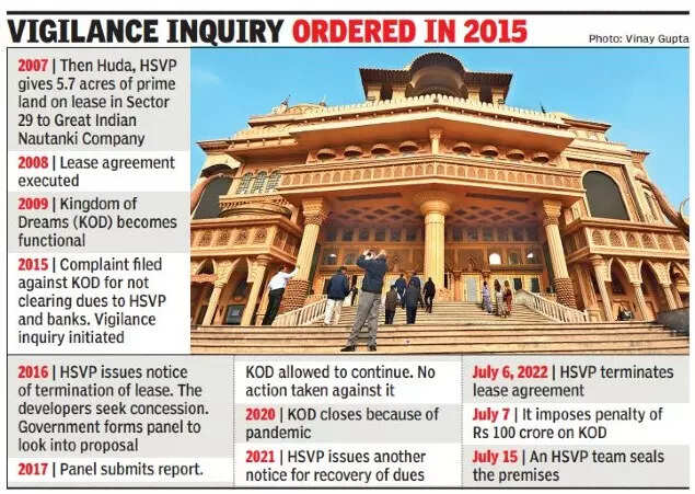 GURUGRAM: Urban development agency HSVP sealed the premises of the Kingdom of Dreams (KOD) on Friday after cancelling its land lease agreement for not clearing dues amounting to around Rs 208 crore.