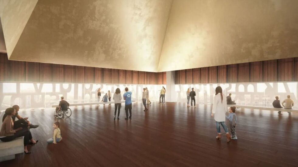 The top of the tower will have the “sky room,” with sweeping panoramic views of Lake Michigan and the city.