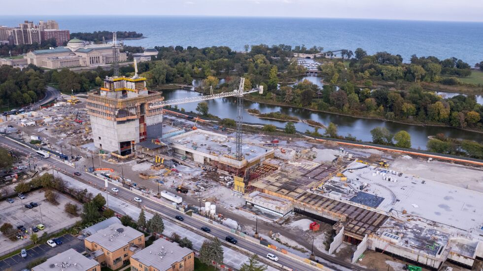 Construction of the Obama Center, which is being financed and built by the Obama Presidential Foundation, is at about the halfway point.