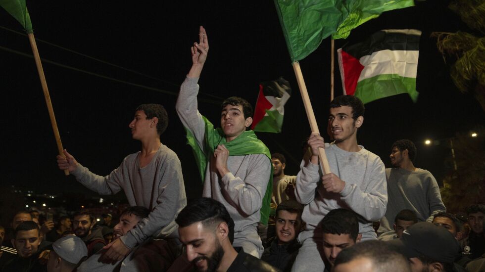 “As a Palestinian, my heart is broken for my brothers in Gaza, so I can’t really celebrate,” said Abdulqader Khatib, a U.N. worker whose 17-year-old son, Iyas, was freed. “But I am a father. And deep inside, I am very happy.”