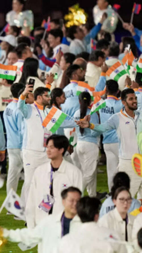 <p>Indian contingent during the closing ceremony of the 19th Asian Games in Hangzhou, China.<br /></p>PTI6/10:Hangzhou Asian Games declared closed in a glittering ceremony
