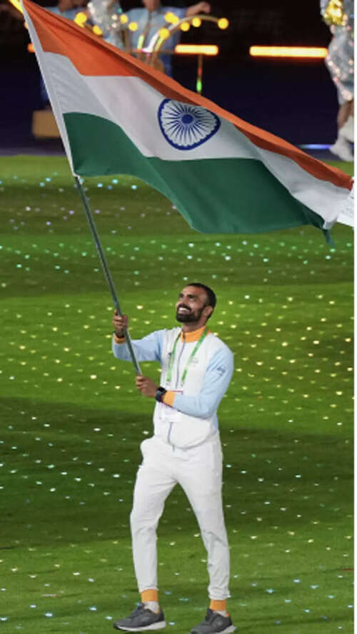 <p>Flag-bearer PR Sreejesh leads the Indian contingent during the closing ceremony of the 19th Asian Games in Hangzhou, China.<br /></p>PTI5/10:Hangzhou Asian Games declared closed in a glittering ceremony