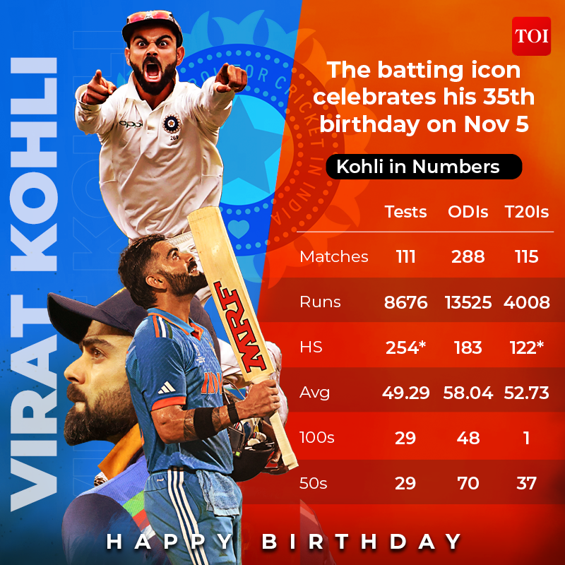 NEW DELHI: Virat Kohli, the mega star of world cricket, turned 35 on Sunday as the sporting world came together to celebrate the icon's birthday amid the euphoria surrounding India's stupendous unbeaten run in the ongoing ICC World Cup in India.
