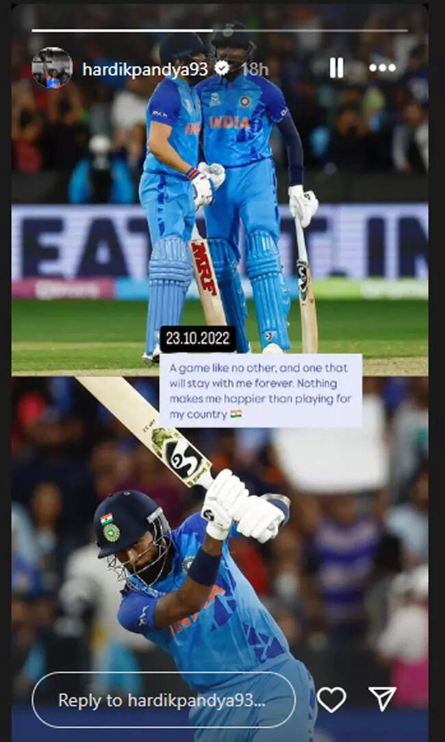Pandya, who was part of that historic match, shared his thoughts on Instagram, posting a picture with the caption: "A game like no other, and one that will stay with me forever. Nothing makes me happier than playing for my country."