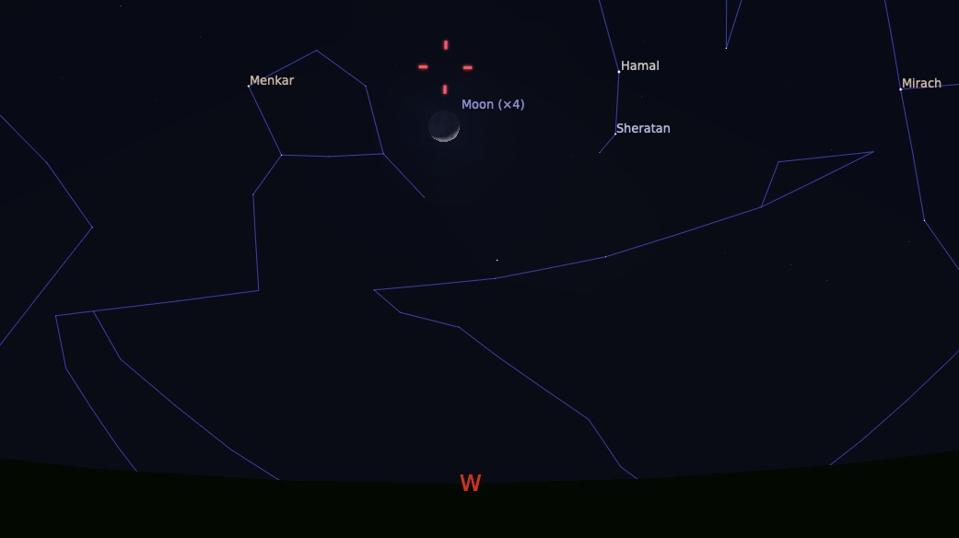 However, to see it you will very likely need to use a pair of binoculars or a small telescope. With binoculars, place the crescent Moon in your field of view and range them upwards about the width of the Moon again.