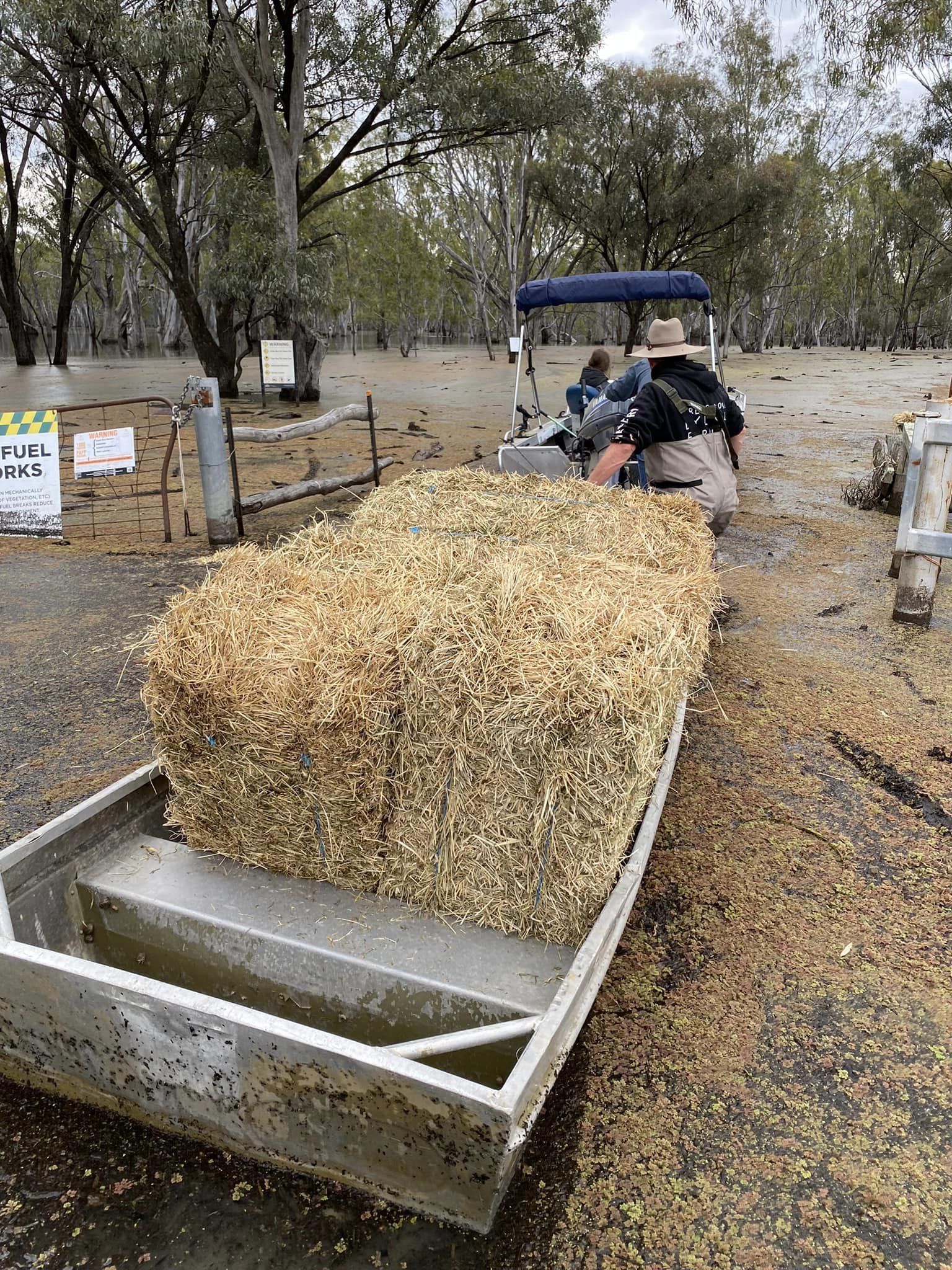 Group president Julie Pridmore, who took part in the activity, saidhay was taken by boats to feed about 150 feral horses that were trapped and "in dire straits".
