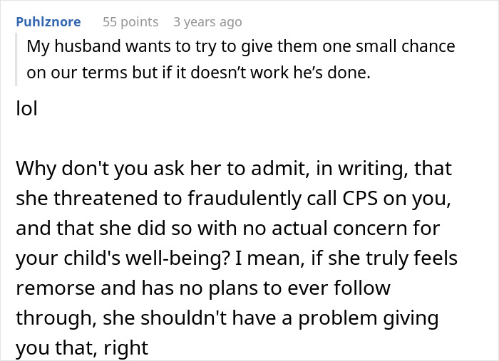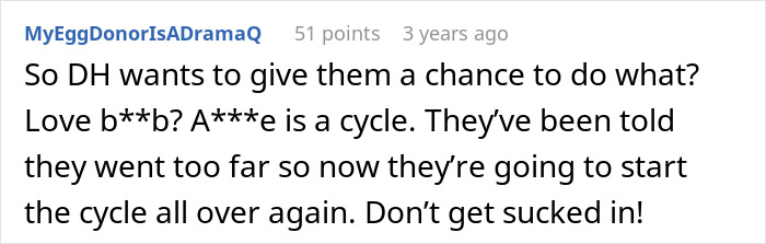 Commenters urged the couple to enforce strict boundaries and go no-contact if necessary
