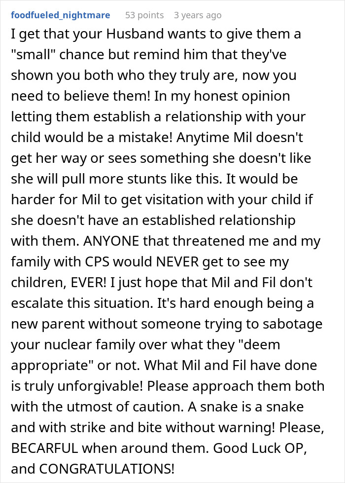 People congratulated the author for standing their ground and urged them not to give in to the in-laws’ further manipulations