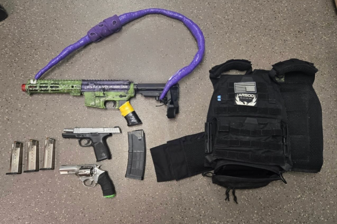 During the investigation, deputies recovered the rifle, two loaded handguns, high-capacity magazines and a ballistic vest capable of stopping bullet rounds.