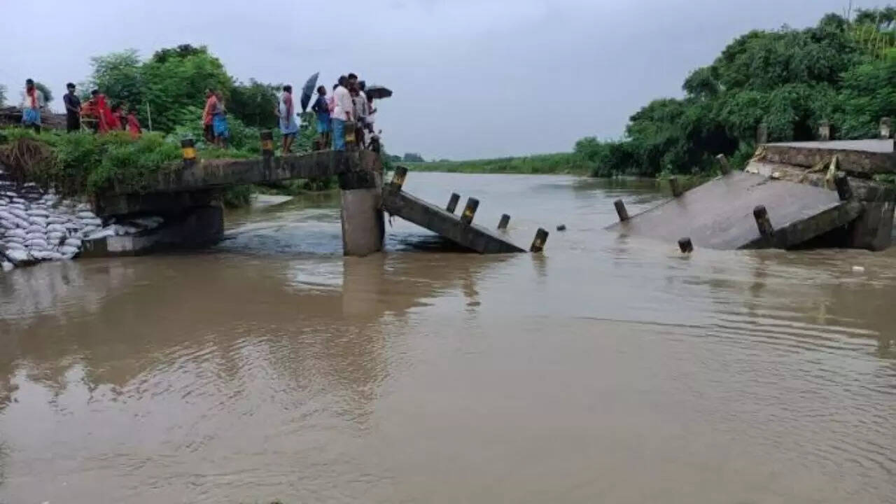 Meanwhile, heavy rain in the catchment area of Sikarahana river has washed away a diversion of Bahuyarawa Baba bridge and dislocated many panchayats of Bagaha-1 block. Villagers have arranged a bamboo bridge (chachari pul) for bikes.and pedestrians. A small bridge over Kataha river under Gaunaha block also reportedly collapsed on Tuesday morning, cutting off six villages of Marjadi panchayat from Gaunaha block headquarters.