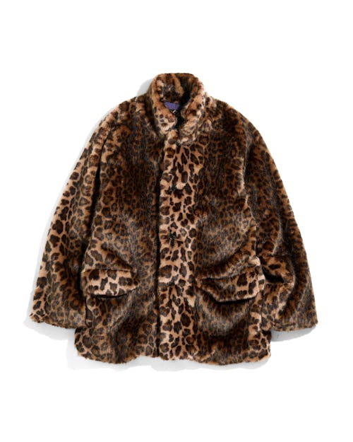A faux fur leopard print is made to feel even more royal with lining coming in the signature shade of purple from the cult Japanese brand Needles.