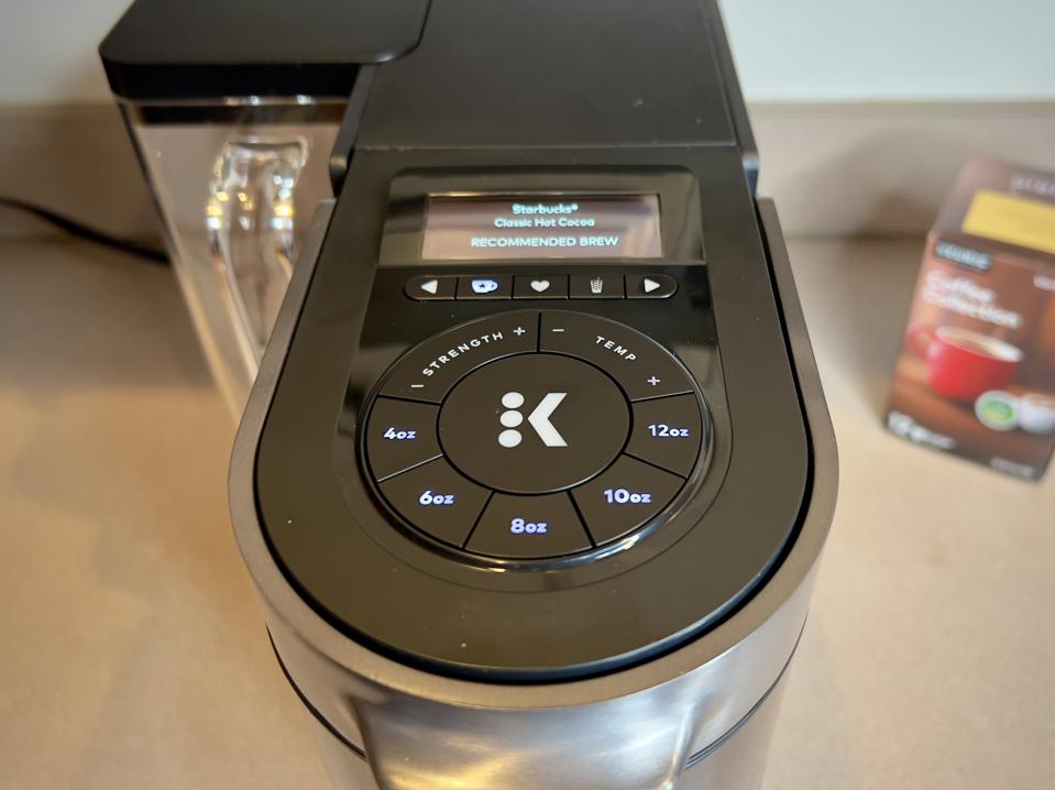 The display and control buttons are part of the lid that gets lifted up to insert each pod, and the machine immediately identifies any Keurig K-Cup you place into it. From the display, you’re then able to default to the optimized settings for that K-Cup variety, or customize it yourself using the control buttons or mobile app.