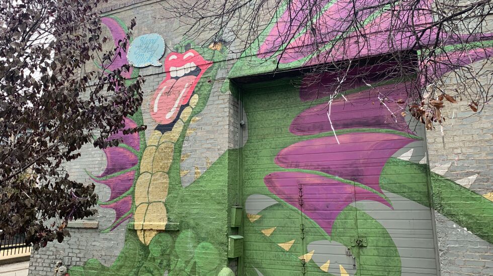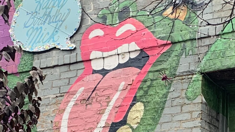 Debbie Peterson co-owns the building. On the front, she painted a mural that has a dragon with the red lips and long, stuck-out tongue associated with the band and Jagger.