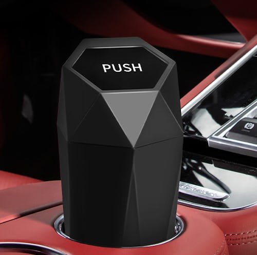 Keep your car tidy and free from crumpled-up wrappers with this car trash bin that fits almost anywhere — cupholders, door pockets, even your desk at home. The flip lid makes it easy to drop things in and helps keep odors contained. Made from durable plastic with a sleek diamond design, it comes with 15 sturdy mini trash bags that are super easy to swap out.