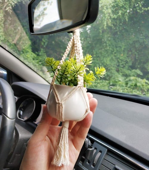 These mini macramé plant hangers are such a cute way to add a little greenery to your ride. The small clay pots come with faux plants, and you can swap in real air plants or succulents if you want. The cotton ropes make them easy to hang anywhere. They’re simple, charming, and make a great little gift — or just a nice treat for yourself.