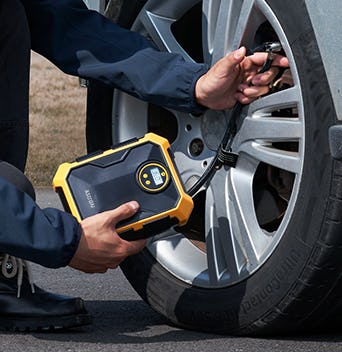 Fast, reliable tire inflation is made easy and foolproof with this compact air compressor — a must-have for anyone on the road. It can take a tire from 29 to 36 PSI in about a minute, while auto shutoff helps ensure accurate results. The 11-foot cord reaches every tire with ease while the LED light, digital pressure display, and multiple nozzles work for almost all vehicles and tires.