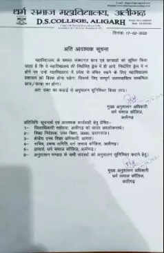 AGRA: Dharma Samaj College, Aligarh, has issued a notice banning entry of students without the prescribed uniform.