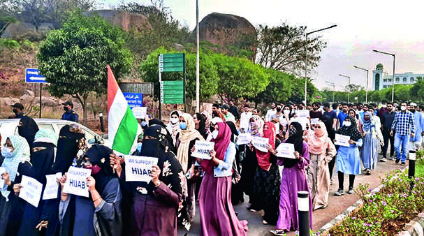 HYDERABAD: Extending support to the Muslim students in Karnataka amid the hijab row, several students staged a protest in Maulana Azad National Urdu University (Manuu) on Thursday.