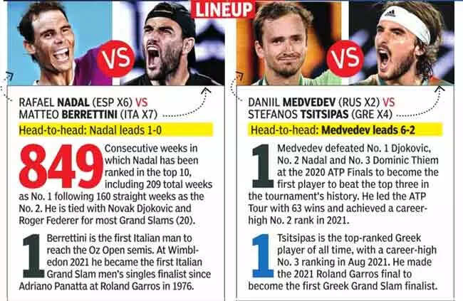 Rafael Nadal is going for a record 21st major title and Daniil Medvedev is two matches away from becoming the first man in the Open Era to back up a maiden Grand Slam triumph with a second on the very next outing.