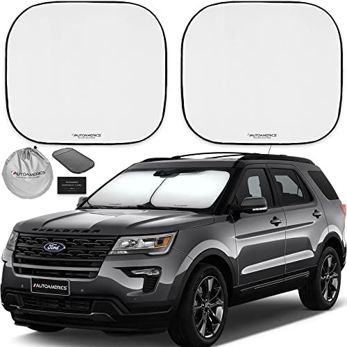 Autoamerics Windshield Sun Shade 2-Piece Foldable Car Front Window Sunshade for Most Sedans SUV Truck - Auto Sun Blocker Visor Protector Blocks Max UV Rays and Keeps Your Vehicle Cool - Medium Fit