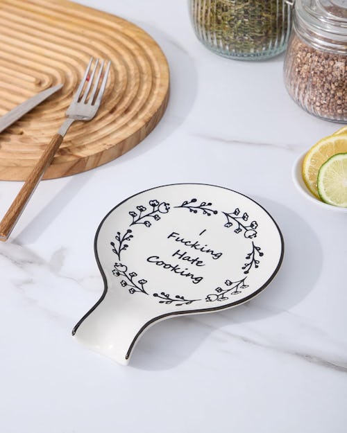 If you f*cking hate cooking but do it anyway, you’ll appreciate the messaging on this “I f*cking hate cooking” ceramic spoon rest. The spoon rest is large at 5.7 inches in diameter, and it comes in four other (less vulgar) designs if that’s more your speed. Shoppers f*cking love it, as apparent by its 4.8 out of five star overall score.