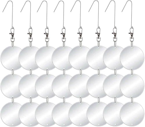 This bird scare disc set comes with 24 large, double-sided reflectors that catch the light from every angle to deter mischievous birds from hanging around. Each disc is made of highly reflective material that spins and flashes with even the slightest breeze. The set includes hanging hooks and rings, so setup is quick and simple.