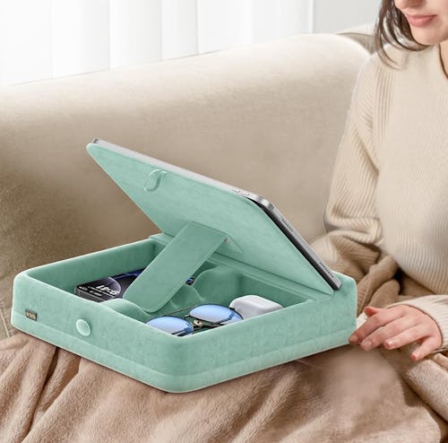 Go hands-free as you stream a show or hop on a video call with this tablet pillow stand. It’s comfy enough to keep on your lap and is even made with a storage compartment so your chargers and earbuds are never too far. You can also choose between three angle options for your screen.