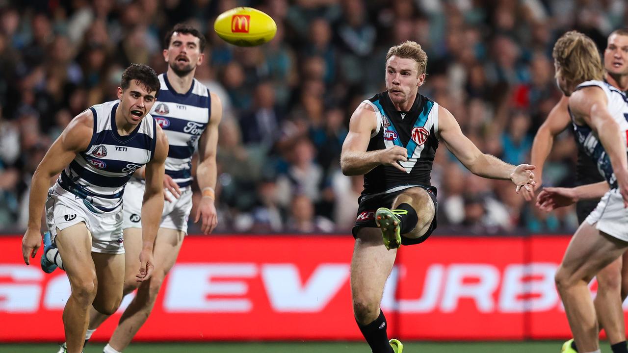 Port's win was triggered by a dominant display from Horne-Francis, who amassed a career-best 34 disposals - he also booted two goals, along with a dozen clearances - and spearhead Mitch Georgiades, who had 10 shots at goal for 4.6.